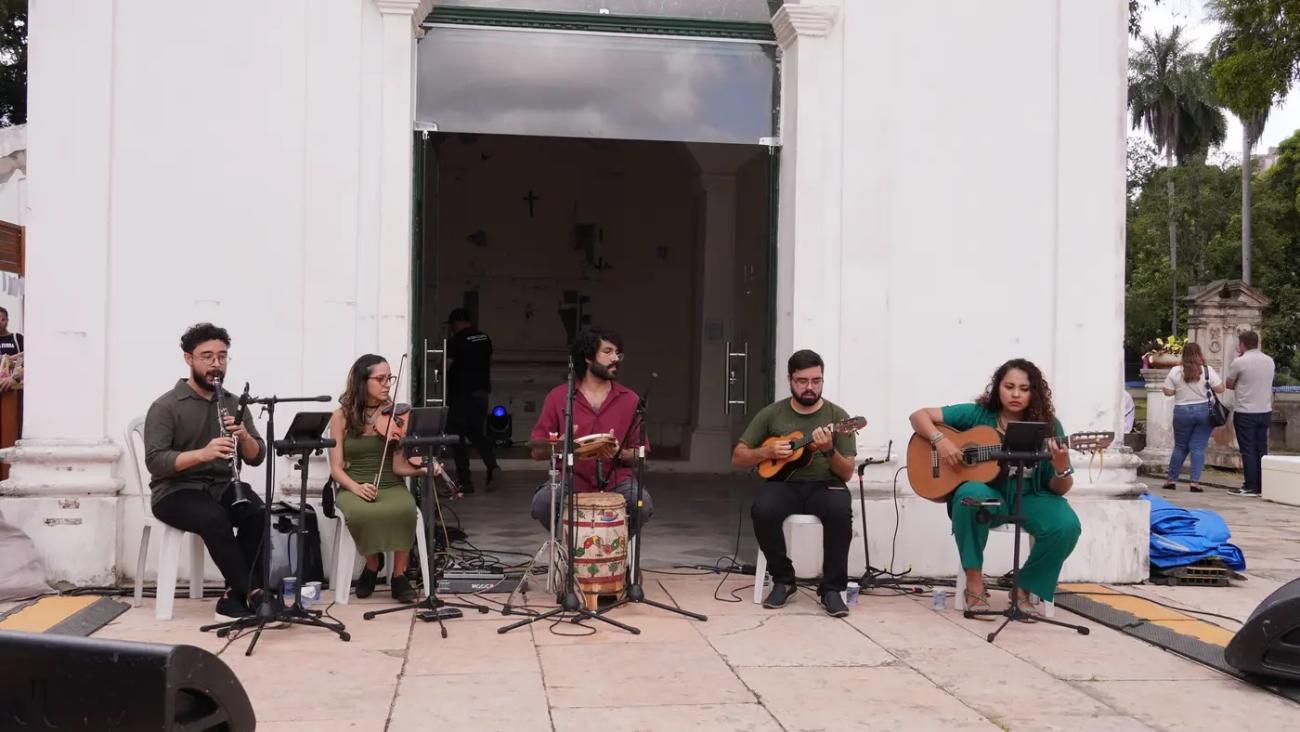 Grupo de choro Quinteto Caxangá se apresentou na entrega do ParquePúblico aproveitou o mais novo espaço museal do EstadoA entrega da obra começou às 10h, com as presenças de Bruno Chagas e Cristina Vasconcelos; do reitor da UFPA, Gilmar Pereira da Silva; do coordenador da segunda etapa do projeto, Alexandre Loureiro, e do diretor da Fundação de Amparo e Desenvolvimento da Pesquisa (Fadesp), Roberto Barreto.
