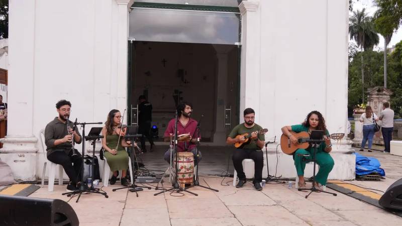 Grupo de choro Quinteto Caxangá se apresentou na entrega do ParquePúblico aproveitou o mais novo espaço museal do EstadoA entrega da obra começou às 10h, com as presenças de Bruno Chagas e Cristina Vasconcelos; do reitor da UFPA, Gilmar Pereira da Silva; do coordenador da segunda etapa do projeto, Alexandre Loureiro, e do diretor da Fundação de Amparo e Desenvolvimento da Pesquisa (Fadesp), Roberto Barreto.